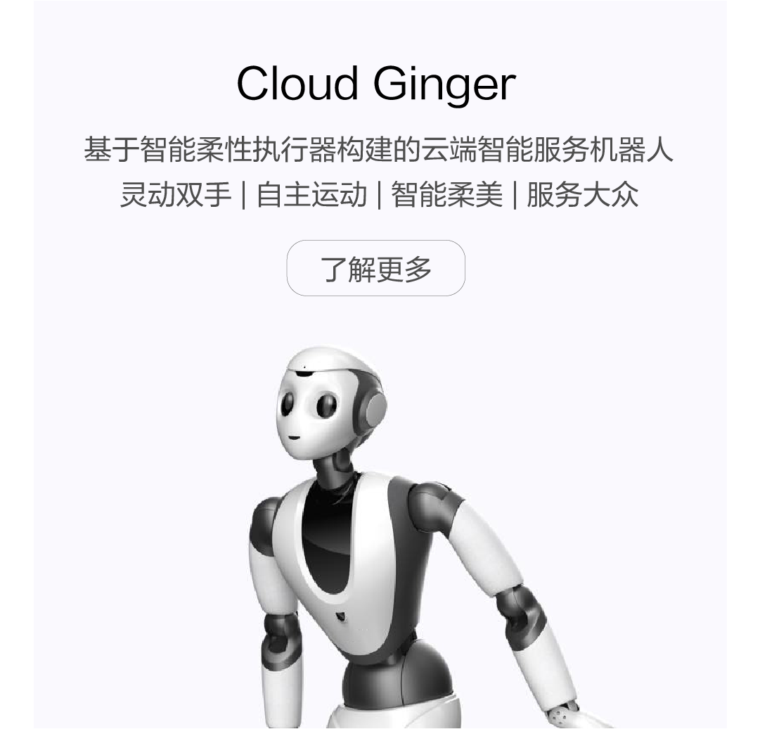 基于智能柔性执行器构建的云端智能服务机器人 灵动双手 | 自主运动 | 智能柔美 | 服务大众 了解更多