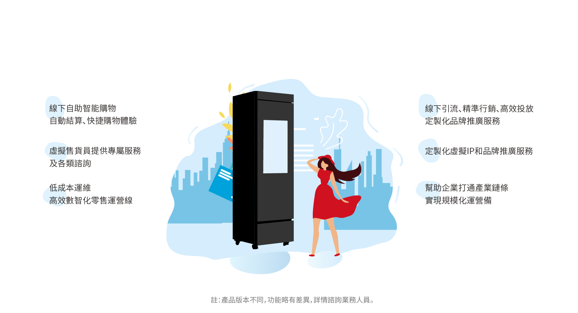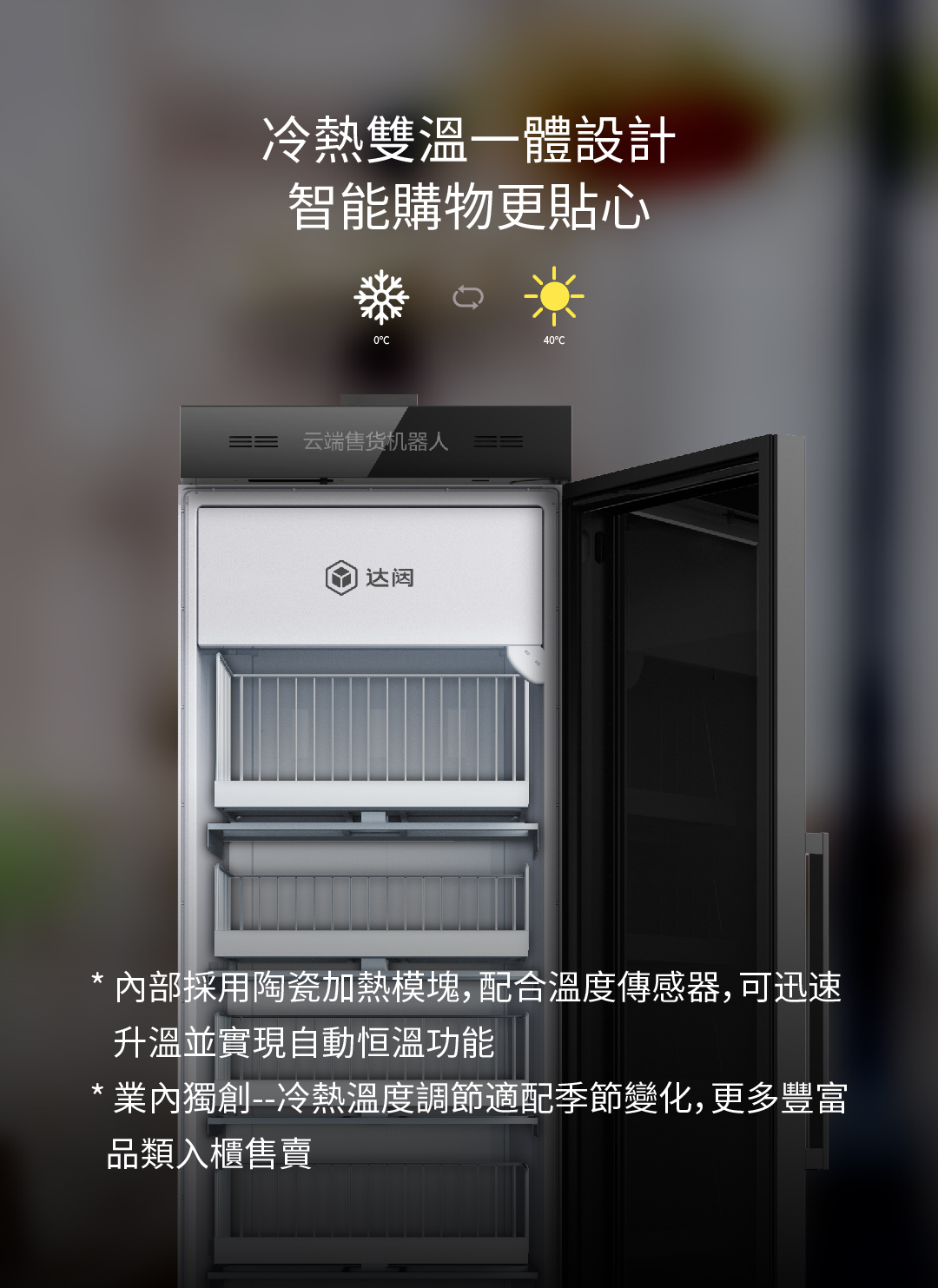 * 業內獨創--冷熱溫度調節適配季節變化,更多豐富品類入櫃售賣