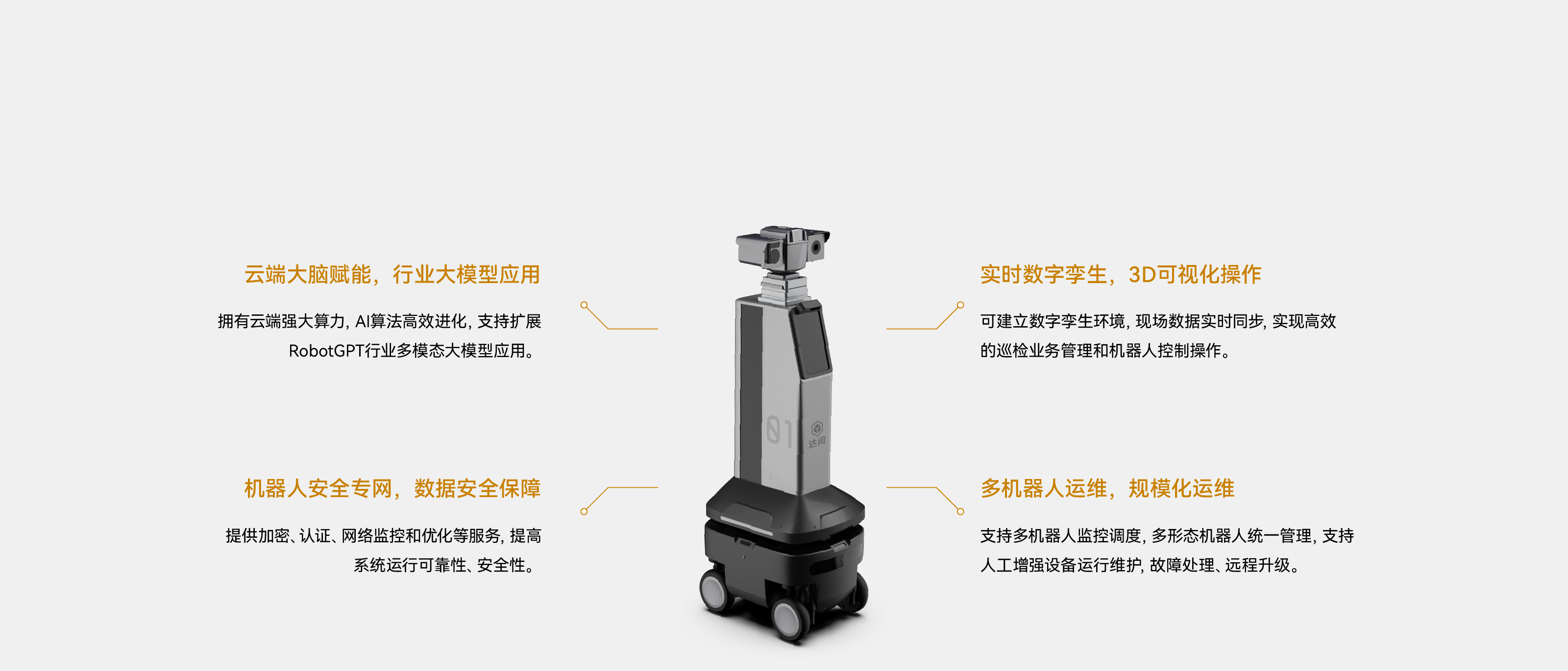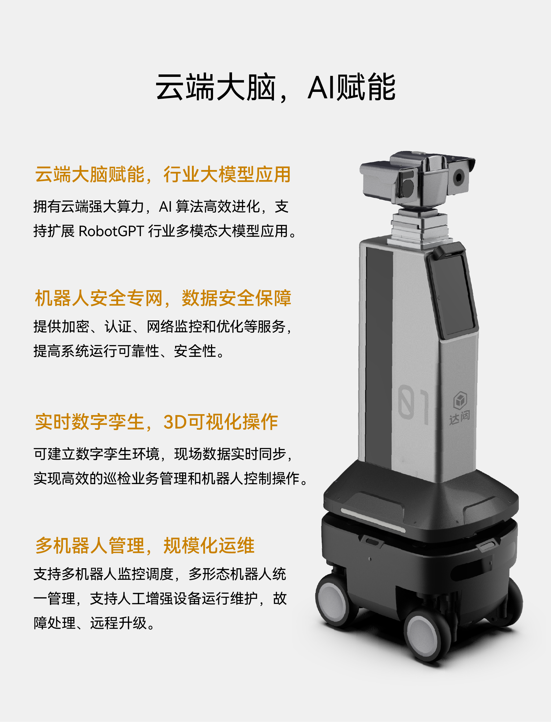 云台相机最高平视高度2800 mm,能俯视机柜顶部,检测区域更广,全方位无死角作业