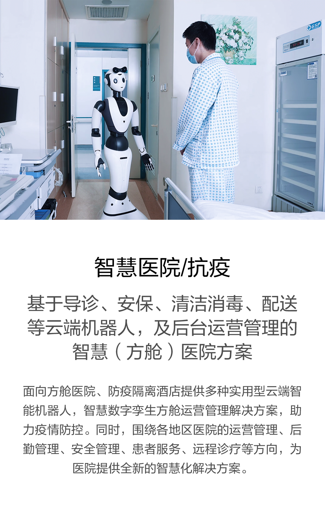面向方舱医院、防疫隔离酒店提供多种实用型云端智能机器人,智慧数字孪生