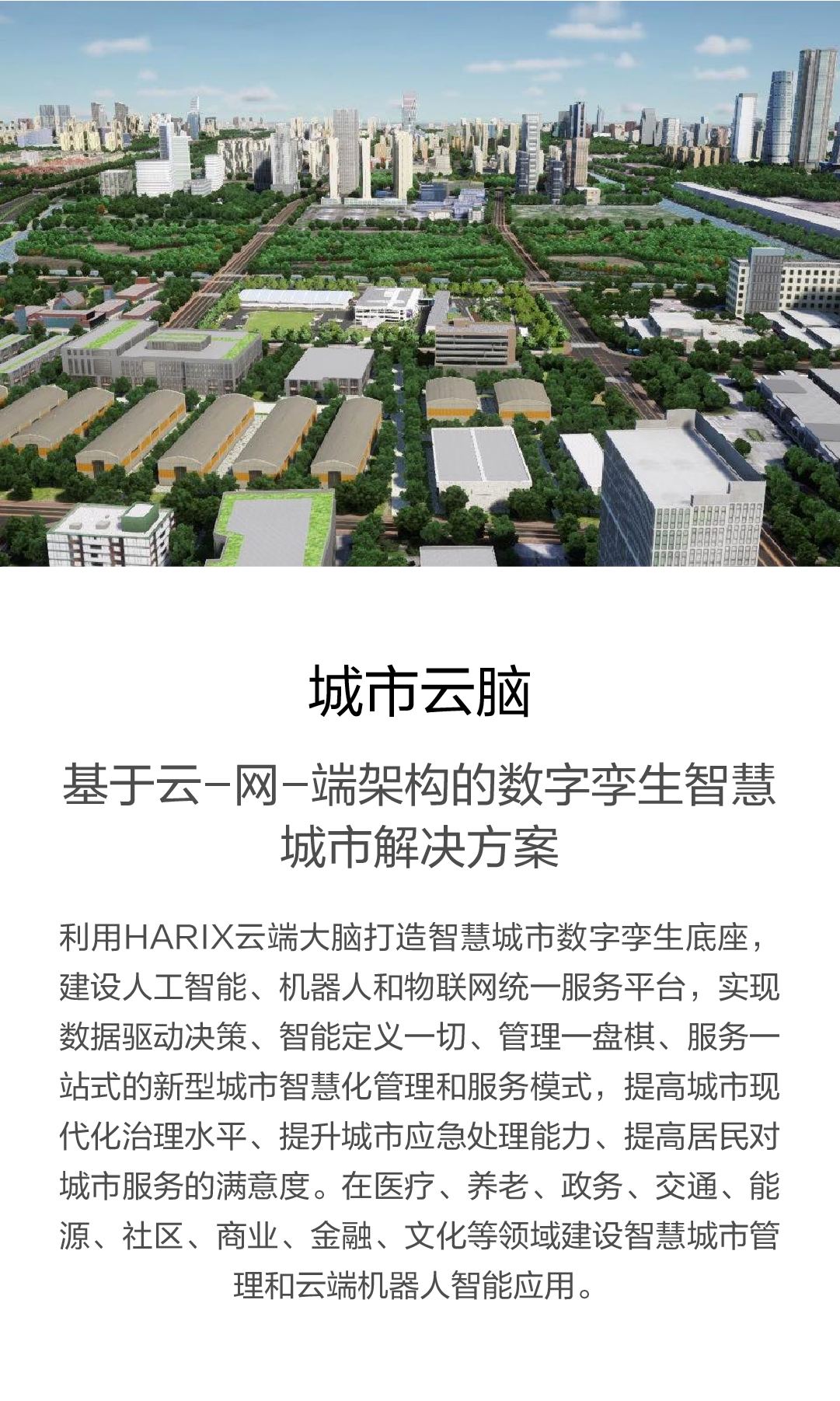 利用HARIX云端大脑打造智慧城市数字孪生底座,建设人工智能、机器人和物联网